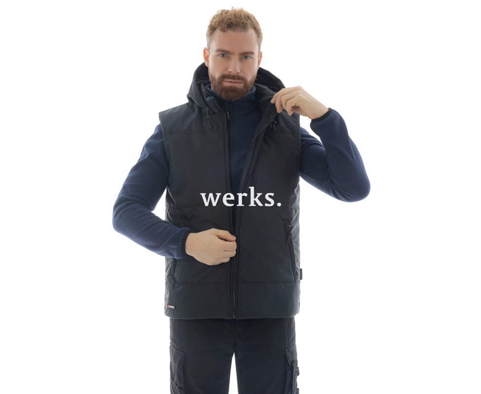Жилет KW 112 – утеплённый жилет на молнии с капюшоном. Выполнен из мембранной ткани с высоким показателем паропроницаемости. Отлично отводит влагу и надёжно сохраняет тепло. Подойдет для ежедневного использования в городе, во время активного отдыха на природе, на работе. В межсезонье его можно носить как верхнюю одежду, а зимой использовать в качестве утепляющего слоя. Test Теплый и легкий Водостойкий Высокая паропроницаемость Компактный утеплитель отлично сохраняет тепло Удлинённая задняя часть Несъемный капюшон 4 кармана: 2 боковых, 2 внутренних Материалы: Ткань верха: мембранная ткань, 100% полиэфир, плотность 145 г/м2, водонепроницаемость 5000 мм, дышащая способность: 15 000 г/м²/24 час, DWR-пропитка Утеплитель: 100% полиэстер, 200 г/м2