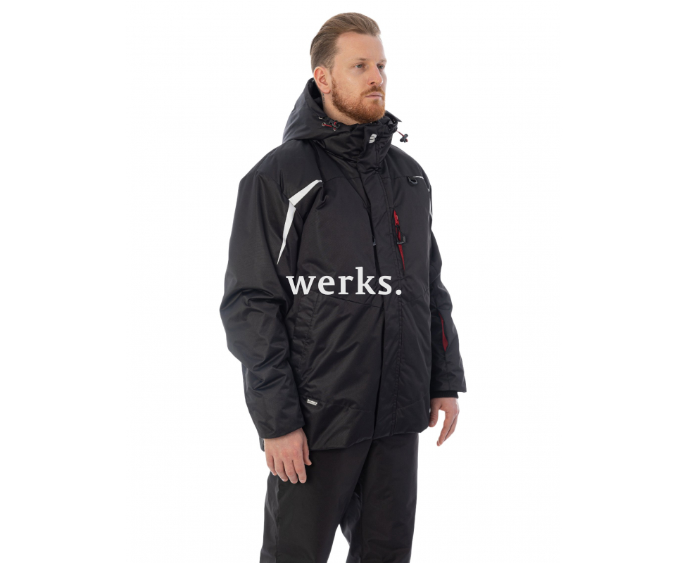 Зимняя рабочая куртка KW 231, черный для ИТР и руководителей. Сочетает в себе презентабельный внешний вид, функциональность и качество исполнения. Лучшее дополнение к летней линейке KS 202/302. Подходит для III климатического пояса Температурный режим: до -18С Капюшон съёмный, подходит для ношения с каской Ветрозащитная юбка Внутренняя эластичная лямка – в помещении можно снимать куртку и носить как рюкзак 8 карманов: 2 для рук, 2 нагрудных, 1 на рукаве, 3 внутренних Материалы: Материал верха: мембрана (100% полиэстер), 3000/3000, DWR-пропитка Утеплитель: ThermoShield, 200 г/м2