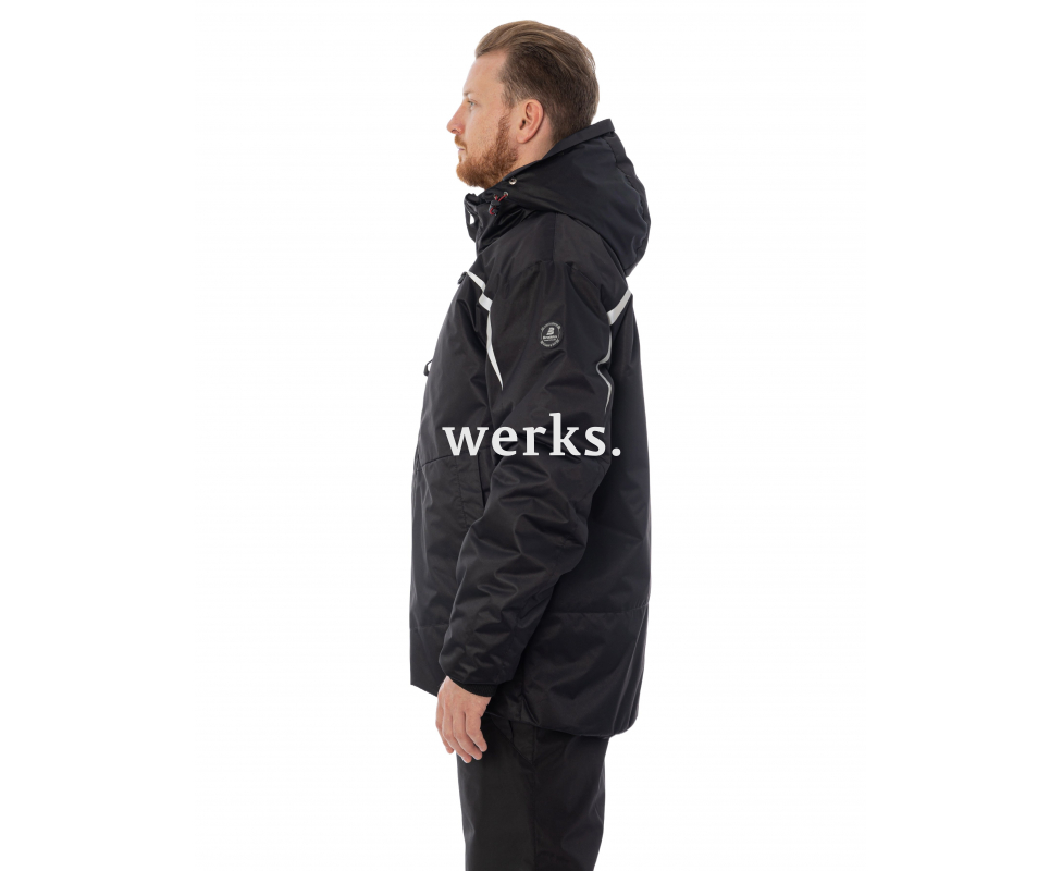 Зимняя рабочая куртка KW 231, черный для ИТР и руководителей. Сочетает в себе презентабельный внешний вид, функциональность и качество исполнения. Лучшее дополнение к летней линейке KS 202/302. Подходит для III климатического пояса Температурный режим: до -18С Капюшон съёмный, подходит для ношения с каской Ветрозащитная юбка Внутренняя эластичная лямка – в помещении можно снимать куртку и носить как рюкзак 8 карманов: 2 для рук, 2 нагрудных, 1 на рукаве, 3 внутренних Материалы: Материал верха: мембрана (100% полиэстер), 3000/3000, DWR-пропитка Утеплитель: ThermoShield, 200 г/м2