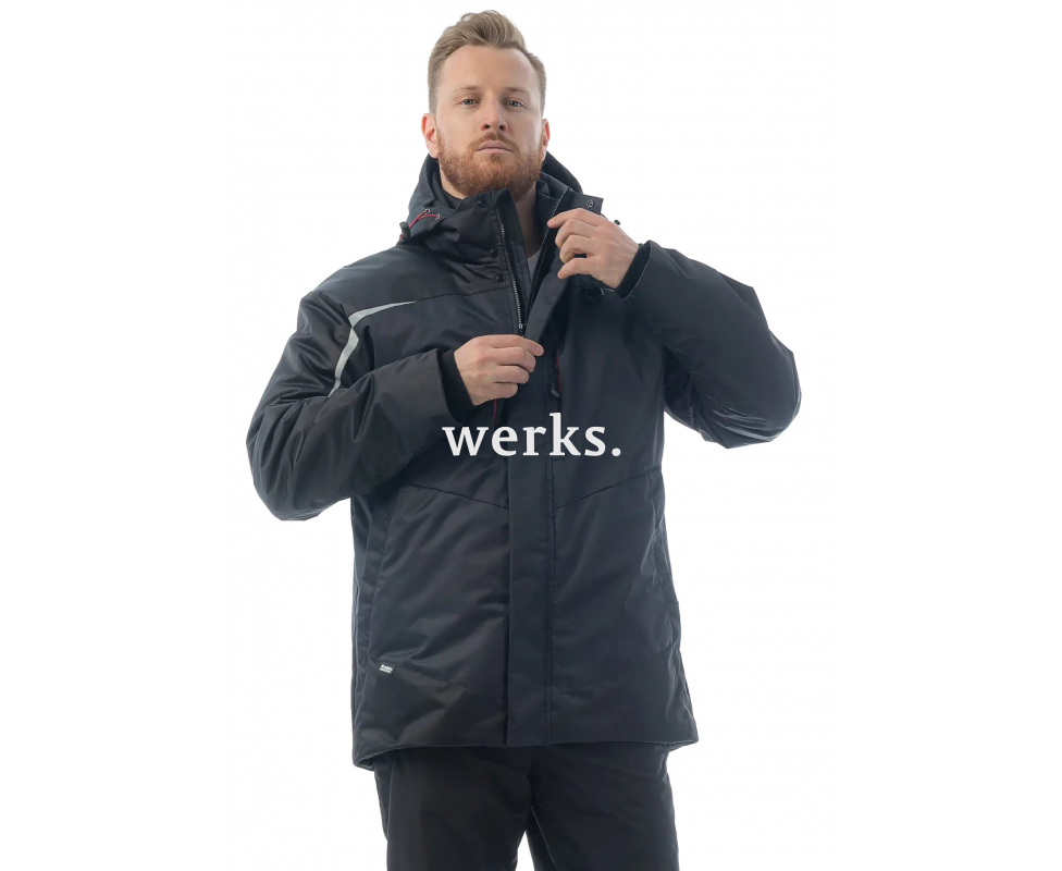 Зимняя рабочая куртка KW 231, черный для ИТР и руководителей. Сочетает в себе презентабельный внешний вид, функциональность и качество исполнения. Подходит для III климатического пояса Температурный режим: до -18С Капюшон съёмный, подходит для ношения с каской Ветрозащитная юбка Внутренняя эластичная лямка – в помещении можно снимать куртку и носить как рюкзак 8 карманов: 2 для рук, 2 нагрудных, 1 на рукаве, 3 внутренних Материалы: Материал верха: мембрана (100% полиэстер), 3000/3000, DWR-пропитка Утеплитель: ThermoShield, 200 г/м2