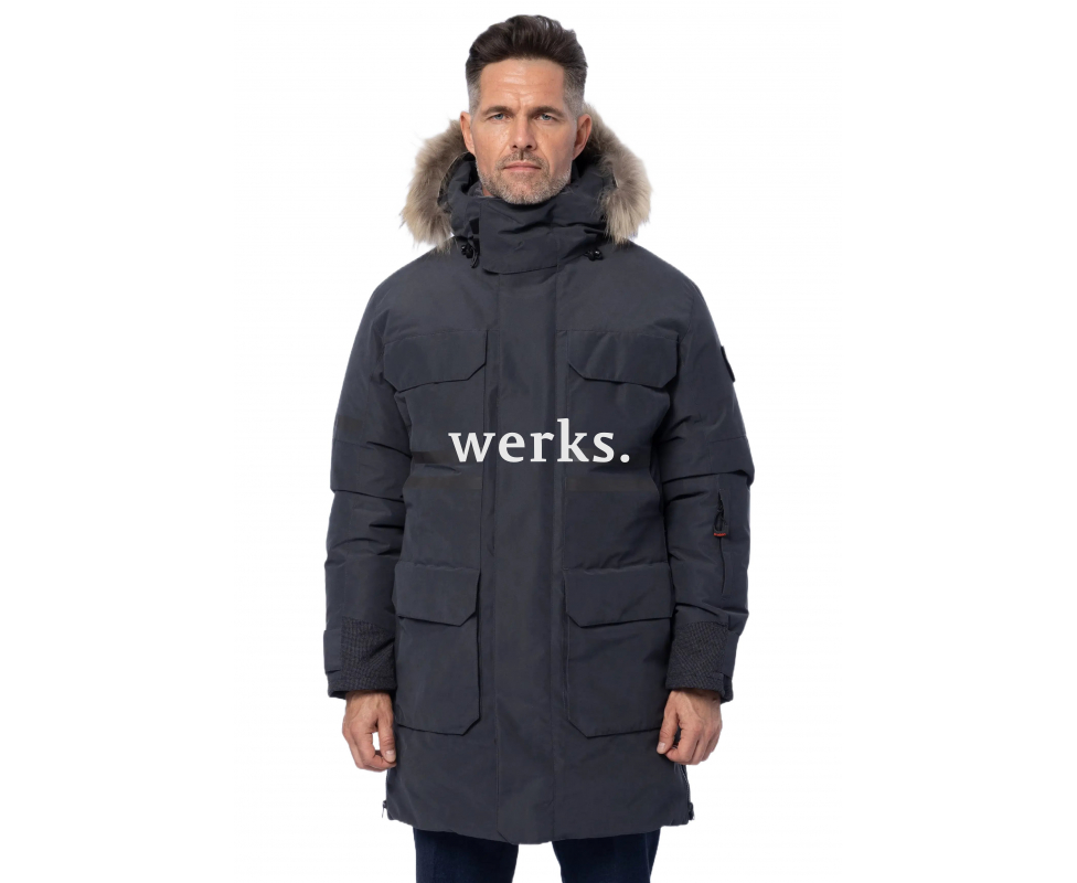 Премиальная парка Brodeks KW233 - как персональная экосистема комфорта, создана для тех, кто ценит совершенство в каждой детали и требует максимума от своей экипировки, будь то улицы мегаполиса или просторы северных экспедиций. Обеспечивает комфортное пребывание на улице до -42°C. В основе парки — элитный гусиный пух (85/15) с высоким показателем Fill Power 650. Он создает максимальную теплоизоляцию при минимальном весе. Снаружи — высокотехнологичная ткань SnowShell . Особое плетение “твилл-добби” из полиэстера и полиамида придает ткани благородную матовую фактуру и исключительную прочность. При этом она бесшумна на морозе и приятна на ощупь. А мощная мембрана 10000/10000 блокирует ветер и мокрый снег, но позволяет телу дышать. Фурнитура: Надежность, возведенная в абсолют Мы использовали легендарные японские молнии YKK. Двухзамковая центральная молния «тракторного» типа гарантирует безотказную работу в любых условиях. Ветрозащитная планка и карманы оснащены магнитами. Больше никаких неудобных кнопок на морозе — планка застегивается сама, одним легким движением. Нижняя часть рукавов, зона повышенного износа, усилена вставками из ткани «Кевлар» — материала, известного своей феноменальной стойкостью к истиранию и разрывам. Это гарантия долговечности парки. Продуманная до мелочей эргономика Система карманов: 6 наружных карманов на магнитах, потайной карман для планшета под центральной планкой, карман для пропуска на рукаве, а также внутренние карманы для документов и гаджетов. Адаптивность: Молнии в боковых швах предоставляют дополнительную свободу движения и делают комфортным вождение автомобиля. Внутренняя утяжка на талии позволяет идеально подогнать силуэт и заблокировать доступ холодному воздуху. Система «свободные руки»: Внутренние лямки позволяют снять парку в помещении (например, в торговом центре) и носить ее за спиной, как рюкзак, оставляя руки свободными. Защита от снега: Снегозащитная юбка с силиконовой полосой плотно прилегает к телу, предотвращая попадание снега и ветра снизу. Капюшон: Роскошная съемная опушка выполнена из натурального меха енота, а внутренняя часть капюшона отделана густым и мягким искусственным мехом премиум класса. Двойная система регулировки по объему и овалу лица позволяет идеально настроить капюшон. Элементы высокой видимости: Мы интегрировали в дизайн элементы высокой видимости - полосы темного цвета. Днем они являются органичной частью образа в цвете «Серый графит», а в сумерках и в непогоду отражают свет, повышая заметность Длинный прямой крой Температура комфорта: от -25°C до -42°C Не промокает и не продувается Центральная молния расстёгивается сверху и снизу Высокий воротник Несъёмный капюшон, регулируется Утяжка в талии 6 наружных карманов на магнитах, потайной карман для планшета под центральной планкой, карман для пропуска на рукаве, а также внутренние карманы для документов и гаджетов Ветрозащитная планка и подпланка Молнии в боковых швах для дополнительной свободы движения и/или комфортного вождения автомобиля СВ-элементы темного цвета Мембрана 10000/10000 Меховая опушка входит в комплект Материалы: Ткань верха: SnowShell (плетение dobby twill, обработка peach velvet) Состав: 88% полиэстер, 12% нейлон, Водоотталкивающая DWR отделка Плотность: 195 г/м2 Мембрана: 10000/10000 Утеплитель: элитный гусиный пух (85/15) с высоким по