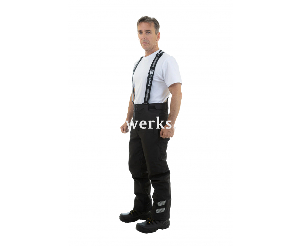 Брюки мужские зимние Brodeks KW 306, черный – утеплённые брюки в минималистичном дизайне для руководителей и ИТР. Защиту от холода обеспечивает компактный утеплитель ThermoShield. Влагозащищенность и воздухопроницаемость – мембранная ткань не пропускает воду, отводит пар наружу, не продувается Компактный утеплитель надежно защищает от холода Съёмный задний элемент с подтяжками и утеплённой подкладкой из микрофлиса Высокая посадка защищает поясницу от продувания Крепкая двойная застёжка: кнопки + липучка Для лучшей посадки по фигуре на поясе есть хлястики на липучках Скользящая подкладка, облегчающая одевание 2 боковых кармана на молнии 2 задних кармана под клапанами Вставки из износостойкого материала по низу брюк во избежание быстрого истирания Есть светоотражающие элементы Подкладка спинки из микрофлиса Подкладка брюк стежка 60 гр/м2 Материалы: Материал верха: Peak (3х слойная ткань. Внешний слой - полиэстер 100%, промежуточный слой – мембрана, внутренний слой – трикотажная сетка 100% полиэстер) Плотность: 145 гр/м2 Мембрана: 10000/10000 Утеплитель: ThermoShield (100% полиэстер), 60 г/м2 Основным свойством трехслойной мембранной ткани Peak является защита от ветра и влаги. Разработана для экстремальных условий. Во время активности материал отводит наружу излишнюю влагу. Полиэстер устойчив к истиранию и различным загрязнениям. ThermoShield - инновационный утеплитель, созданный для современной рабочей одежды. Благодаря уникальной структуре волокон он сочетает в себе превосходную защиту от холода, исключительный комфорт и долговечность. Разработан с учетом потребностей специалистов различных профессий, работающих в сложных погодных условиях.