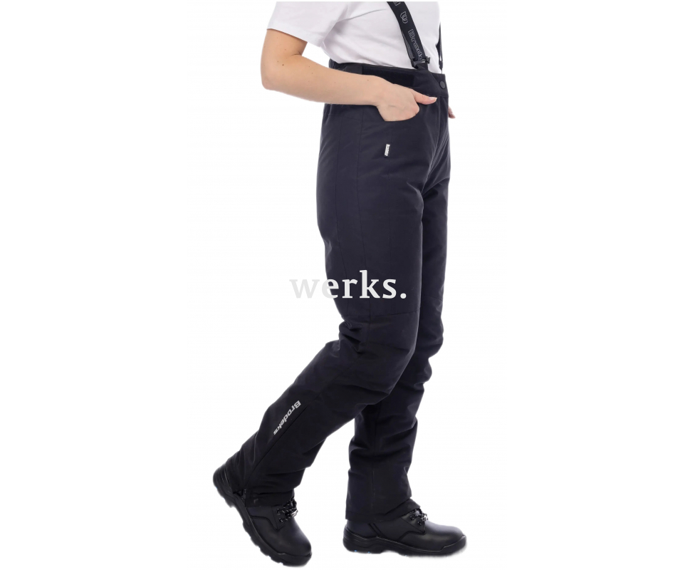 Универсальный зимние женские брюки с утеплителем, обеспечивают надёжную защиту от холода. Подходит для работы на улице и в неотапливаемых помещениях, а также для прогулок и зимних видов спорта. Мембранная ткань не пропускает воду и эффективно отводит влагу, сохраняя комфорт в течение всего дня. Высокая посадка защищает поясницу от продувания. Для удобства на поясе есть утяжка с резинкой на велкро. В брюках два боковых кармана. Модель удобно трансформируется: при необходимости спинку можно отстегнуть. По низу штанин молнии для высокой обуви. Предусмотрены снегозащитные манжеты. Влагонепроницаемость 10 000 мм Паропроницаемость 10 000 г/м2/24 часа Универсальность – можно носить как брюки. Удлинённая задняя часть с лямками отстегивается Высокая посадка - защищает поясницу от продувания Утяжка пояса с велкро для регулировки объема Застежка на кнопку, с доп.усилением на велкро – для надежности Два боковых кармана По низу штанин – молнии для высокой обуви Снегозащитные манжеты СВ элементы Материалы: Ткань верха: SnowShell (плетение dobby twill, обработка peach velvet) Состав: 88% полиэстер, 12% нейлон, Водоотталкивающая DWR отделка Плотность: 195 г/м2 Мембрана: 10000/10000 Утеплитель: Shelter Micro 120 г/м2 (100% полиэстер)