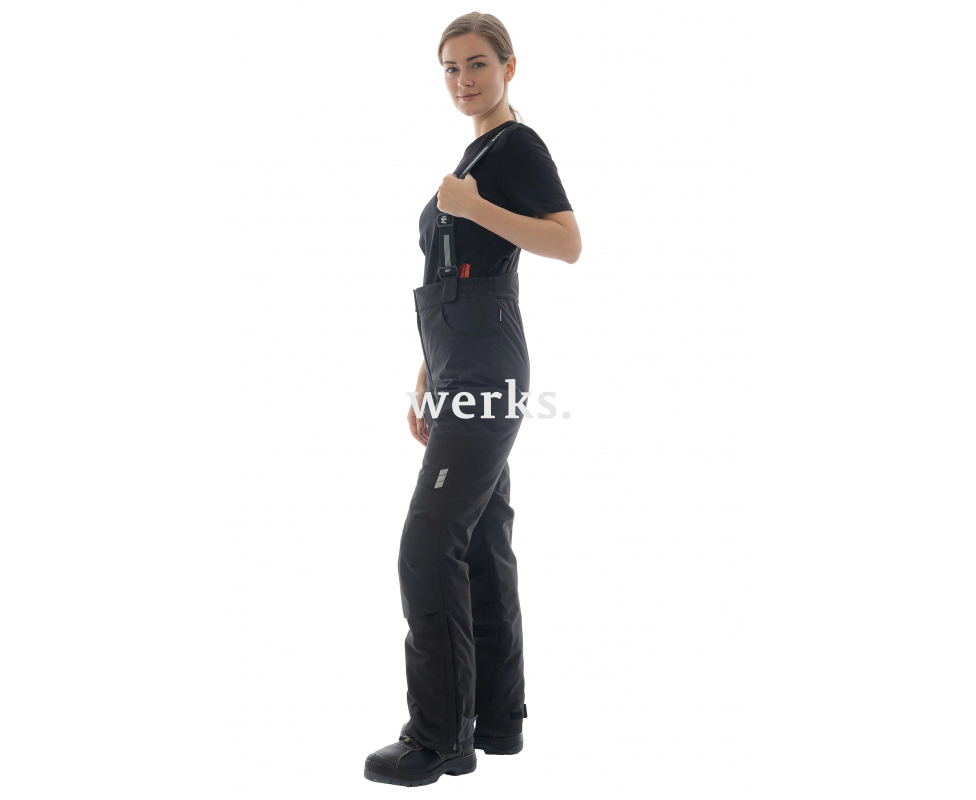 Женский рабочий полукомбинезон KW 405 – универсальный вариант для работ в зимний период. За защиту от холода отвечает очень лёгкий утеплитель Shelter Micro. Он не впитывает влагу, гипоаллергенный, не деформируется при носке. Влагозащищенность и воздухопроницаемость – мембранная ткань не пропускает воду, отводит пар наружу Утеплитель Shelter Micro сохраняет тепло даже при повышенной влажности, не впитывает влагу, надежно защищает от холода Задняя часть полукомбинезона с утеплением Высокая посадка защищает поясницу от продувания Есть светоотражающие вставки Для лучшей посадки по фигуре на поясе есть резинка Швы по внутренней и внешней стороне бедер проклеены, поэтому вода не попадет внутрь изделия. Кроме того, благодаря проклеенным швам полукомбинезон прослужит дольше. Есть два кармана по бокам штанин По низу штанин – снегозащитные манжеты и молния по бокам для высокой обуви Универсальные – можно носить как брюки, нужно лишь отстегнуть задний элемент и снять лямки Отделение для наколенников Материалы: Материал верха: Peak (3х слойная ткань. Внешний слой - полиэстер 100%, промежуточный слой – мембрана, внутренний слой – трикотажная сетка 100% полиэстер) Плотность: 145 гр/м2 Мембрана: 10000/10000 Утеплитель: Shelter (100% полиэстер), 120 г/м2 Основным свойством трехслойной мембранной ткани Peak является защита от ветра и влаги. Разработана для экстремальных условий. Во время активности материал отводит наружу излишнюю влагу. Полиэстер устойчив к истиранию и различным загрязнениям.