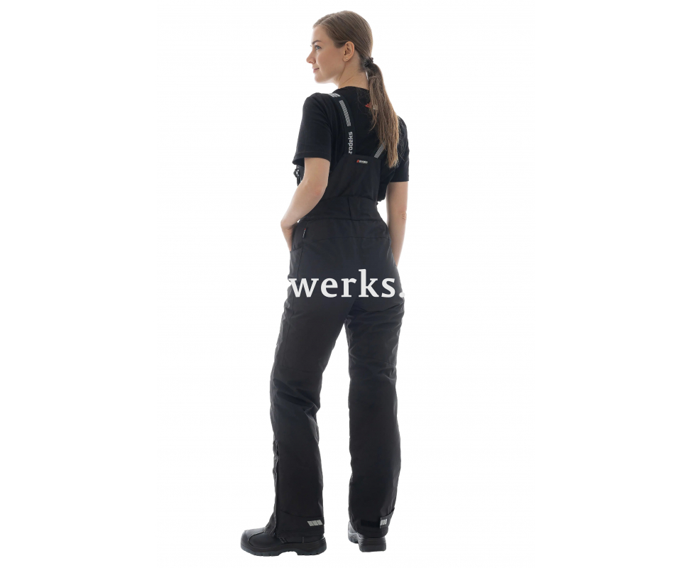 Женский рабочий полукомбинезон KW 405 – универсальный вариант для работ в зимний период. За защиту от холода отвечает очень лёгкий утеплитель Shelter Micro. Он не впитывает влагу, гипоаллергенный, не деформируется при носке. Влагозащищенность и воздухопроницаемость – мембранная ткань не пропускает воду, отводит пар наружу Утеплитель Shelter Micro сохраняет тепло даже при повышенной влажности, не впитывает влагу, надежно защищает от холода Задняя часть полукомбинезона с утеплением Высокая посадка защищает поясницу от продувания Есть светоотражающие вставки Для лучшей посадки по фигуре на поясе есть резинка Швы по внутренней и внешней стороне бедер проклеены, поэтому вода не попадет внутрь изделия. Кроме того, благодаря проклеенным швам полукомбинезон прослужит дольше. Есть два кармана по бокам штанин По низу штанин – снегозащитные манжеты и молния по бокам для высокой обуви Универсальные – можно носить как брюки, нужно лишь отстегнуть задний элемент и снять лямки Отделение для наколенников Материалы: Материал верха: Peak (3х слойная ткань. Внешний слой - полиэстер 100%, промежуточный слой – мембрана, внутренний слой – трикотажная сетка 100% полиэстер) Плотность: 145 гр/м2 Мембрана: 10000/10000 Утеплитель: Shelter (100% полиэстер), 120 г/м2 Основным свойством трехслойной мембранной ткани Peak является защита от ветра и влаги. Разработана для экстремальных условий. Во время активности материал отводит наружу излишнюю влагу. Полиэстер устойчив к истиранию и различным загрязнениям.