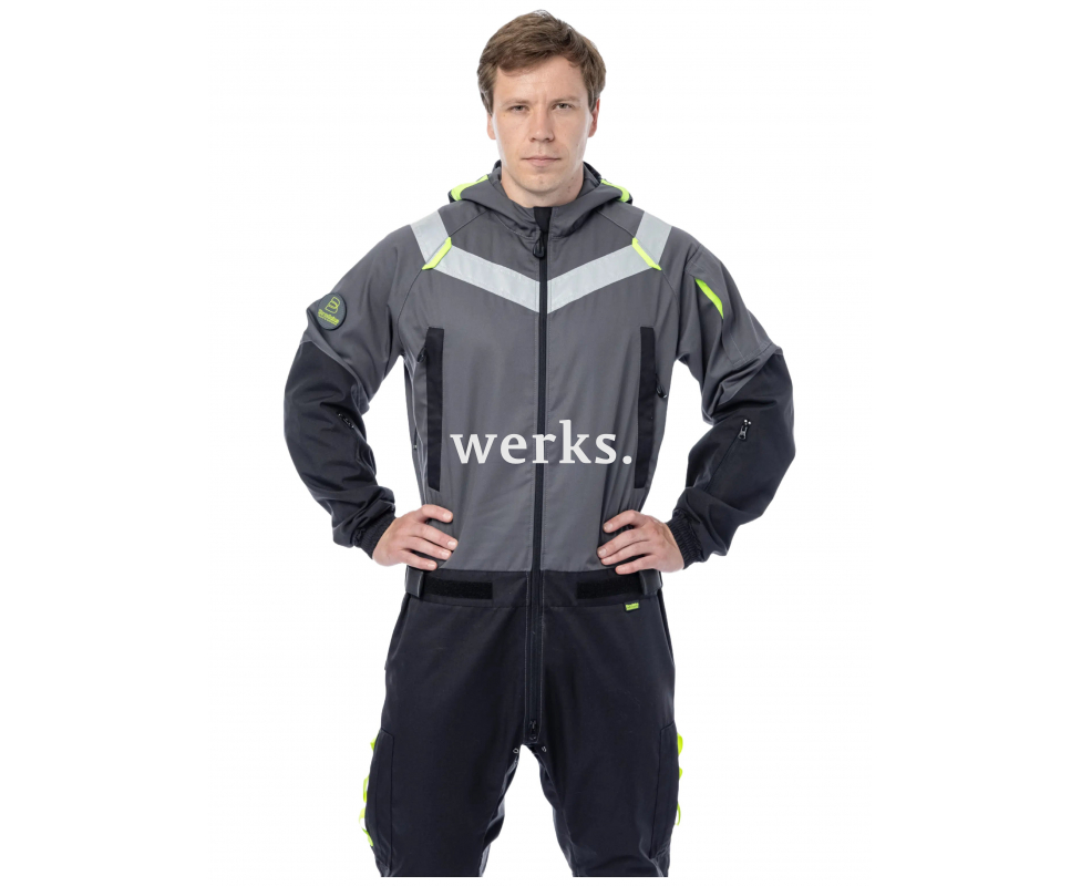 Комбинезон Brodeks KS 503 – летний комбинезон для промышленного альпинизма и различных видов работ, где требуется защита от пыли, ветра и производственных загрязнений. Учитывает потребности в повышенном комфорте и большом количестве карманов и крепежа для инструментов. Сшит из прочной и лёгкой в уходе ткани. Устойчив к ОПЗ, лёгок в уходе Усиление износостойкой тканью задней части рукавов и коленей Область колен с мягкой амортизирующей прослойкой Двухзамковая центральная молния Капюшон регулируется, можно носить с каской Пояс спинки с эластичной тесьмой Вентиляционные молнии в подмышках, отверстия в области лопаток и паха Крой и детали учитывают возможность использования альпинистской обвязки Карманы на молнии, спроектированы под углом во избежание выпадения предметов на высоте 2 кармана на груди, 3 кармана на рукавах, 2 объёмных кармана на бёдрах, лента для крепления инструментов Манжеты рукавов на резинке Расширения на молниях внизу штанин для быстрого переобувания По низу брюк регулировка по объёму хлястиками на липучках Есть петля для рации В нагрудных карманах есть небольшая петля для крепления карабина Светоотражающие ленты 5 см и кант Материалы: Материал верха: Workshell 35% хлопок, 65% полиэфир, плотность 245 г/м2 Ткань Workshell fabric плотностью 245 гр/м2 устойчива к разрывам и истиранию. Выдерживает интенсивные нагрузки. Хлопок обеспечивает мягкость и комфорт, а полиэстер - прочность и долговечность. Специальная отделка Easy Care упрощает уход, сохраняет цвет и структуру ткани.