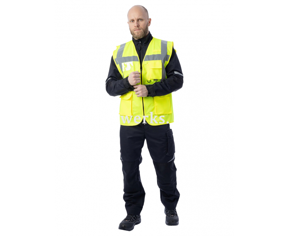 Сигнальный жилет Brodeks KM122 - жилет 2 класса видимости предназначен для обеспечения повышенной видимости в любых условиях. Его можно носить поверх летней и зимней одежды. Жилет обеспечивает безопасность в светлое и темное время суток, а также в сложных метеорологических условиях, таких как туман, дождь или снег. 6 карманов, крепление для рации, прозрачный держатель для ID бейджа, а также надежная молния делают его функциональным и удобным. В летний период, надев его на футболку можно получить функциональный рабочий аксессуар. Застежка на молнию спереди для удобства СВ ленты шириной 50 мм Два нижних накладных кармана Карман для телефона и ручки Отсек для удостоверения личности Петля для крепления рации D-образное кольцо для карабина Доступно в размерах от S до 3XL 2 класс повышенной видимости Материалы: 100 % полиэстер