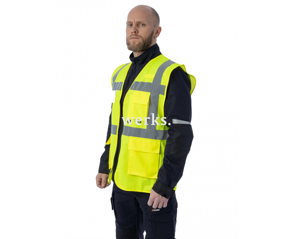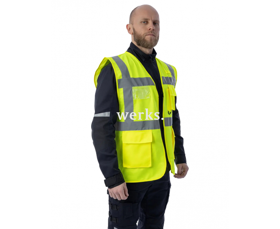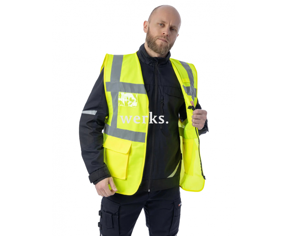 Сигнальный жилет Brodeks KM122 - жилет 2 класса видимости предназначен для обеспечения повышенной видимости в любых условиях. Его можно носить поверх летней и зимней одежды. Жилет обеспечивает безопасность в светлое и темное время суток, а также в сложных метеорологических условиях, таких как туман, дождь или снег. 6 карманов, крепление для рации, прозрачный держатель для ID бейджа, а также надежная молния делают его функциональным и удобным. В летний период, надев его на футболку можно получить функциональный рабочий аксессуар. Застежка на молнию спереди для удобства СВ ленты шириной 50 мм Два нижних накладных кармана Карман для телефона и ручки Отсек для удостоверения личности Петля для крепления рации D-образное кольцо для карабина Доступно в размерах от S до 3XL 2 класс повышенной видимости Материалы: 100 % полиэстер