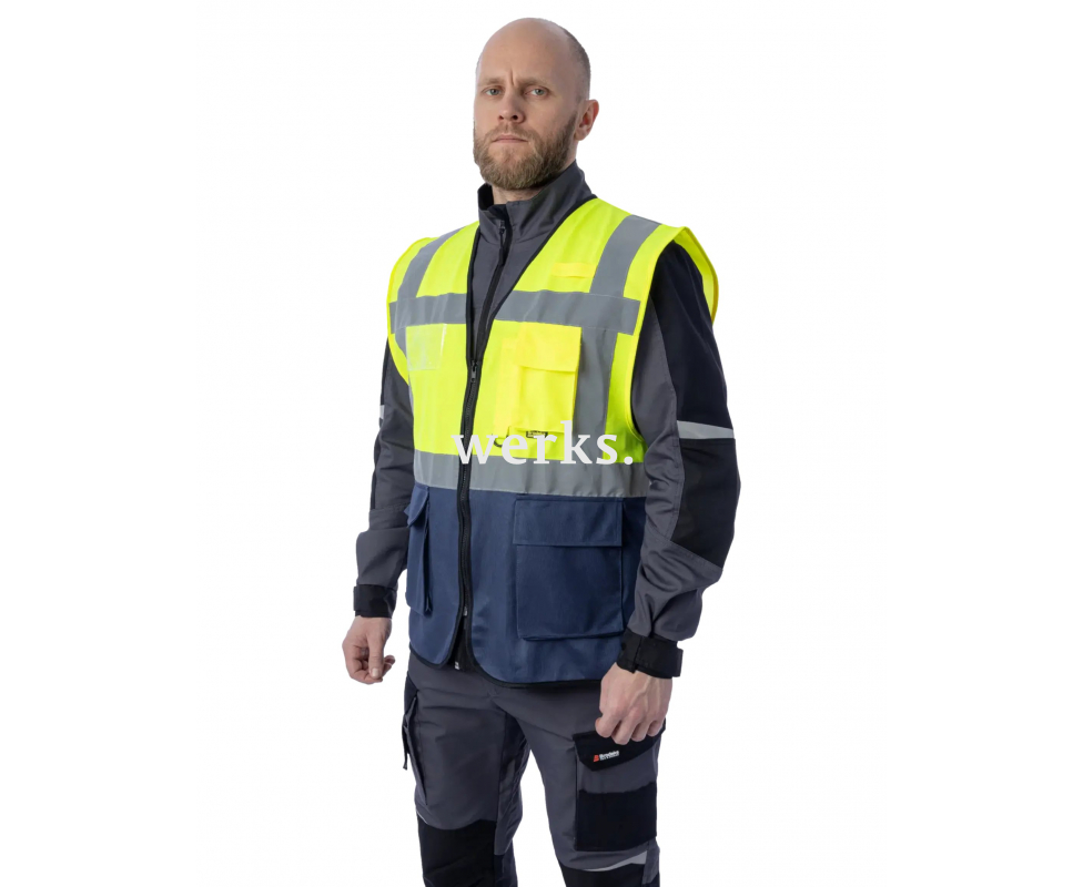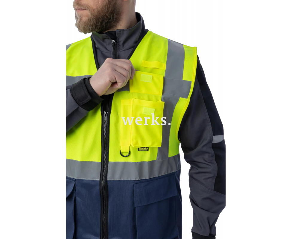 Сигнальный жилет Brodeks KM123 - жилет 1 класса видимости предназначен для обеспечения повышенной видимости в любых условиях. Его можно носить поверх летней и зимней одежды. Жилет обеспечивает безопасность в светлое и темное время суток, а также в сложных метеорологических условиях, таких как туман, дождь или снег. 6 карманов, крепление для рации, прозрачный держатель для ID бейджа, а также надежная молния делают его функциональным и удобным. В летний период, надев его на футболку можно получить функциональный рабочий аксессуар. Застежка на молнию спереди для удобства СВ ленты шириной 50 мм Два нижних накладных кармана Карман для телефона и ручки Отсек для удостоверения личности Петля для крепления рации D-образное кольцо для карабина Доступно в размерах от S до 3XL 1 класс повышенной видимости Материалы: 100 % полиэстер