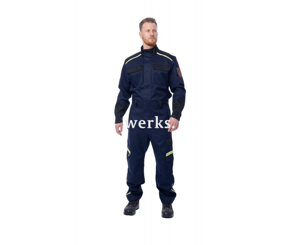 Комбинезон сварщика FS 58-01 – рабочий комбинезон с защитными свойствами от повышенных температур, искр и брызг расплавленного металла. Это новое слово в спецодежде, когда наряду с защитными свойствами и комфортом на первый план выходит респектабельный внешний вид. Подходит для выполнения сварочных работ в закрытых помещениях или летом на улице. Комбинезон сертифицирован на 1 класс. Устойчив к искрам и брызгам расплавленного металла Термостойкий Лёгкий Прочный на разрыв, износостойкий Долго сохраняет презентабельный внешний вид Воротник-стойка с возможностью регулировки объёмаЦентральная молния открывается сверху и снизу Защитная планка поверх молнии Вентиляция в области подмышек и на лопатках Пояс с резинкой и шлёвками для ремня Отделения под наколенники с нижней загрузкой 6 карманов: 2 нагрудных кармана, 2 кармана на брюках, боковой накладной карман, задний карман Конструкция карманов исключает попадание искр и брызг металла Вставка в паховой области для комфорта движений Кнопки для регулировки объёма по низу брюк Удлинение брюк на 5 см Вся фурнитура термостойкая Световозвращающие ленты Материалы: 100% хлопок, плотность 340 г/м2, Пропитка Proban